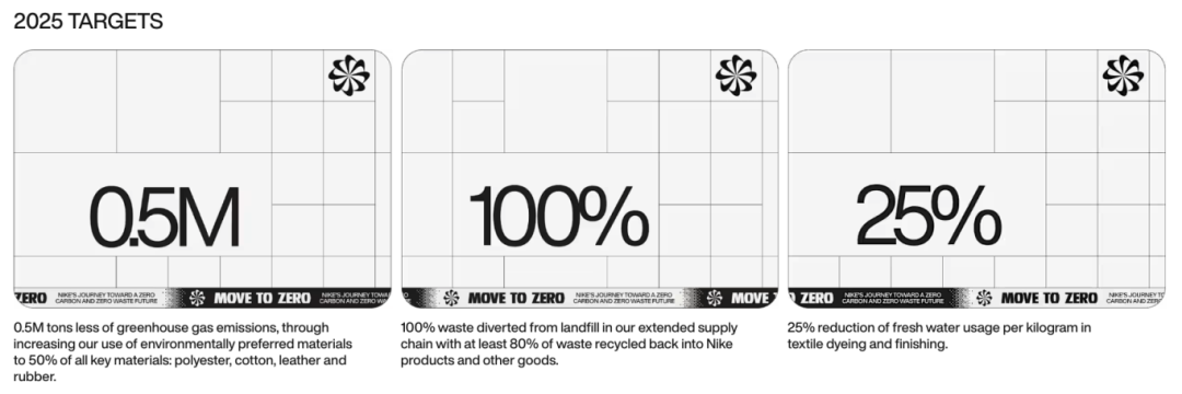 Nike no solo se fijó un objetivo de carbono de cero emisiones netas en 2050, sino que también logró antes de lo previsto su objetivo para 2025, que es reducir 500.000 toneladas de emisiones de carbono mediante el uso de no menos del 50% de EPM en todos los materiales clave (poliéster, algodón, cuero y caucho). Medidas como aumentar la proporción de poliéster reciclado en los productos de calzado y optimizar los materiales de cuero con bajas emisiones de carbono son la clave para avanzar. El informe de impacto del año fiscal 2023 de Nike muestra que la proporción de fibra de poliéster reciclada utilizada en los productos de calzado y prendas de vestir de Nike ha aumentado un 11 % en comparación con el año fiscal 2022; su filial Converse también está ampliando el uso de fibra de poliéster reciclado y reemplazando los materiales de poliéster virgen con poliéster reciclado tanto como sea posible en cada estilo de calzado. El uso de fibra de poliéster reciclada por parte de la marca ha aumentado un 91% respecto al año anterior.