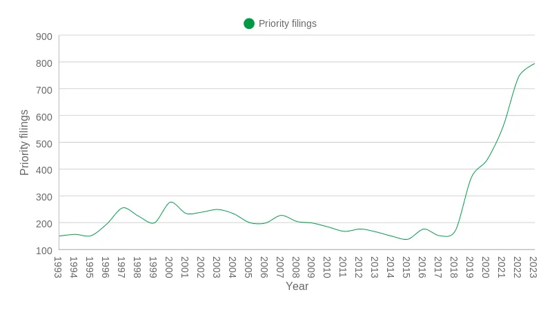 Con el global " Economía circular del plástico "Con el continuo fortalecimiento del concepto, la tecnología de reciclaje químico está marcando el comienzo de un período de crecimiento significativo. Según la Oficina de Innovación Tecnológica y de Propiedad Intelectual del Reino Unido Appleyard Lees El último informe publicado por la organización, que durante mucho tiempo se ha centrado en el análisis de tendencias en materia de patentes, la estrategia de propiedad intelectual y la investigación sobre innovación sostenible, muestra que, Las solicitudes mundiales de patentes para tecnología de reciclaje químico de plástico alcanzaron 794 en 2023 , un aumento de aproximadamente el 6% con respecto a los 746 casos de 2022 y el doble de los 368 casos de 2019. Esta tendencia de crecimiento récord refleja que el entusiasmo inversor de la industria global y la vitalidad de la innovación tecnológica en el reciclaje y la reutilización de plástico continúan aumentando.